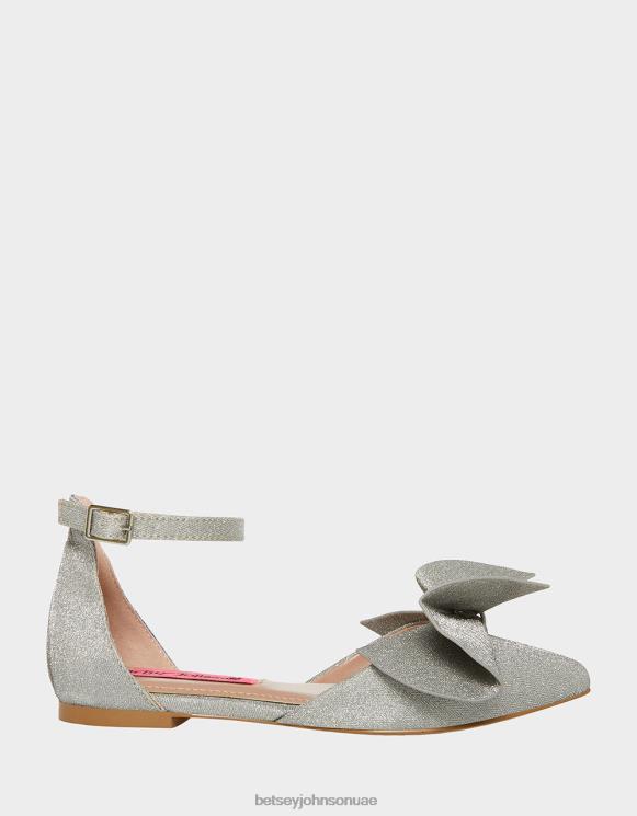دع طفلك يلمع في معدنيًا لامعًا مسطحًا span> للأطفال مع حزام كاحل ساحر وتفاصيل فيونكة.