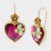 تتميز هذه الأقراط المتقنة بالزهور بمجموعة مثيرة من الكريستالات والتفاصيل الذهبية على سحر الورد الجريء.