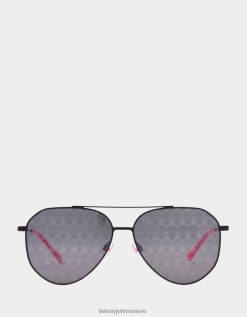 نحيف Betsey Johnson النظارات الشمسية المطبوعة الجميلة أسود مُكَمِّلات ZXT0V375