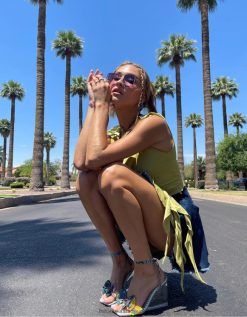 اخرجي بأناقة مع الكعب الساتان الشير! تبحث عن حذاء من المؤكد أنه سيضفي لمسة من الإثارة على أمسيتك ، يتميز هذا الكعب ذو النعلية بفيونكة من حجر الراين على مقدمة مدببة شفافة مما يجعله مثاليًا لإضافة لمسة من التألق إلى خزانة ملابسك.