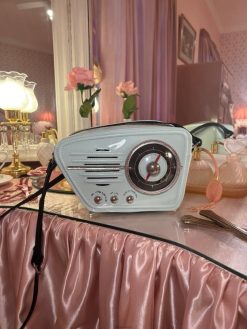 احصل على أخدودك مع حقيبة يد الراديو الرجعية هذه! يخزن جميع الأساسيات الخاصة بك ويتصل لاسلكيًا بهاتفك حتى تتمكن من تشغيل الألحان من خلال مكبر الصوت. نعم ، لقد قرأت ذلك بشكل صحيح ، هذه الحقيبة هي أيضًا مكبر صوت لهاتفك !! (يتطلب 3 بطاريات AA للعب – غير مضمنة)