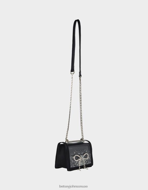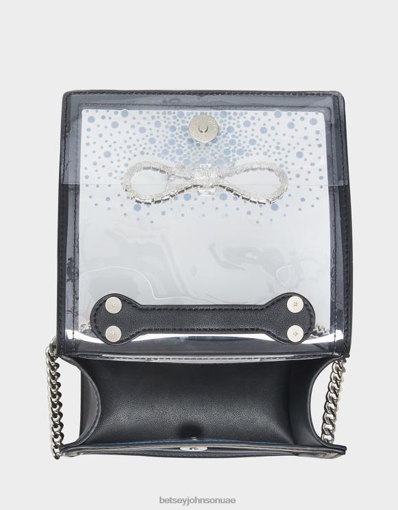 نحيف Betsey Johnson كيس شفاف قابل للتحويل مع قوس حجر الراين أسود مُكَمِّلات ZXT0V238